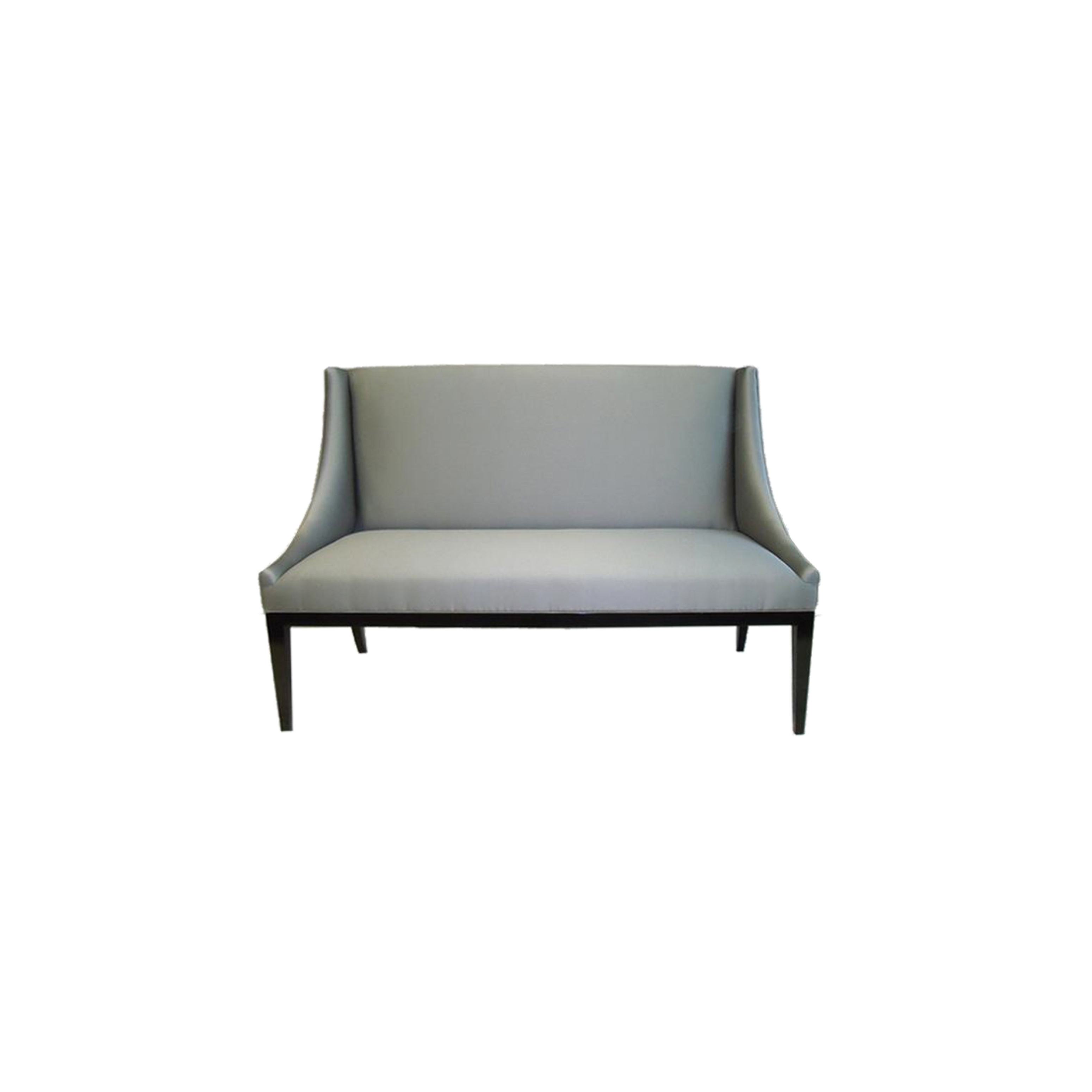 Fully upholstered sofa with dark matt timber feet and bronze foot caps.