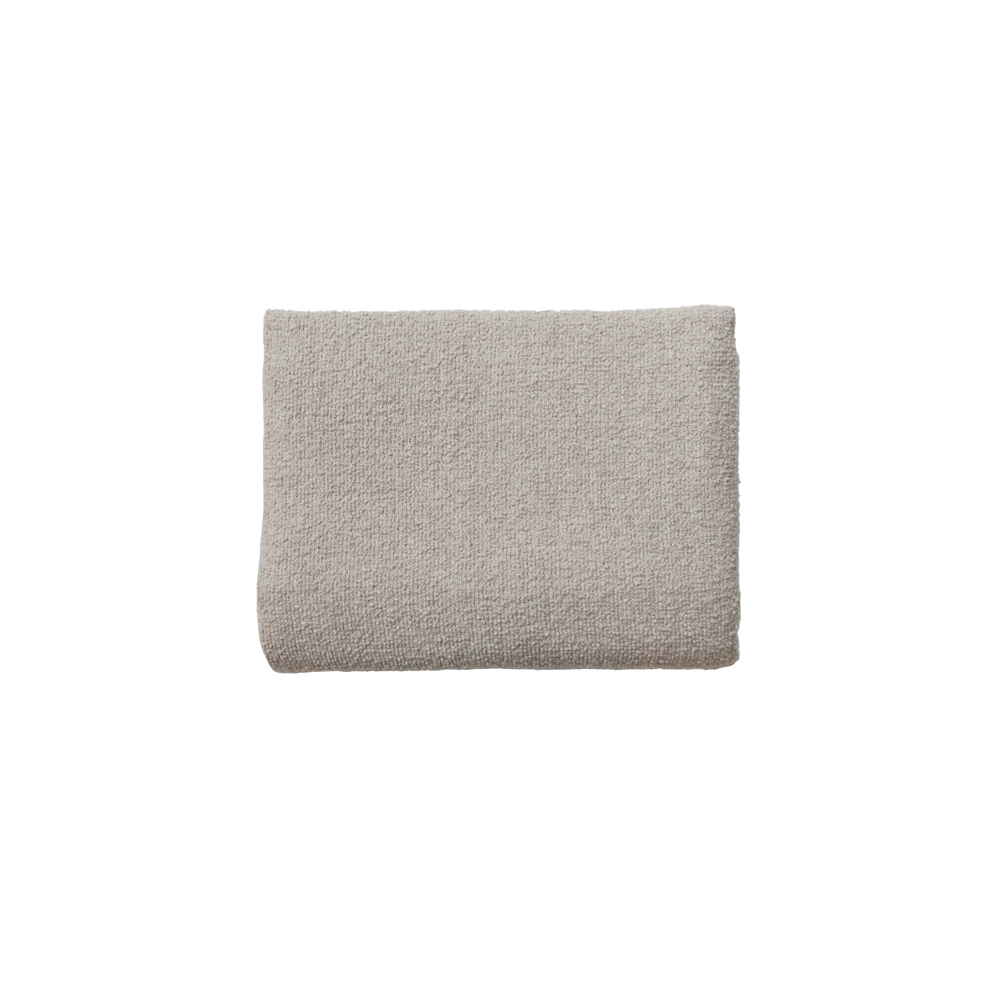 Luxurious cashmere and silk textured throw. Soft to the touch and lightweight, this ecru-hued throw offers a beautifully enveloping sensation. It adds both warmth and elegance to your home, making it perfect for layering on your sofa or bed.