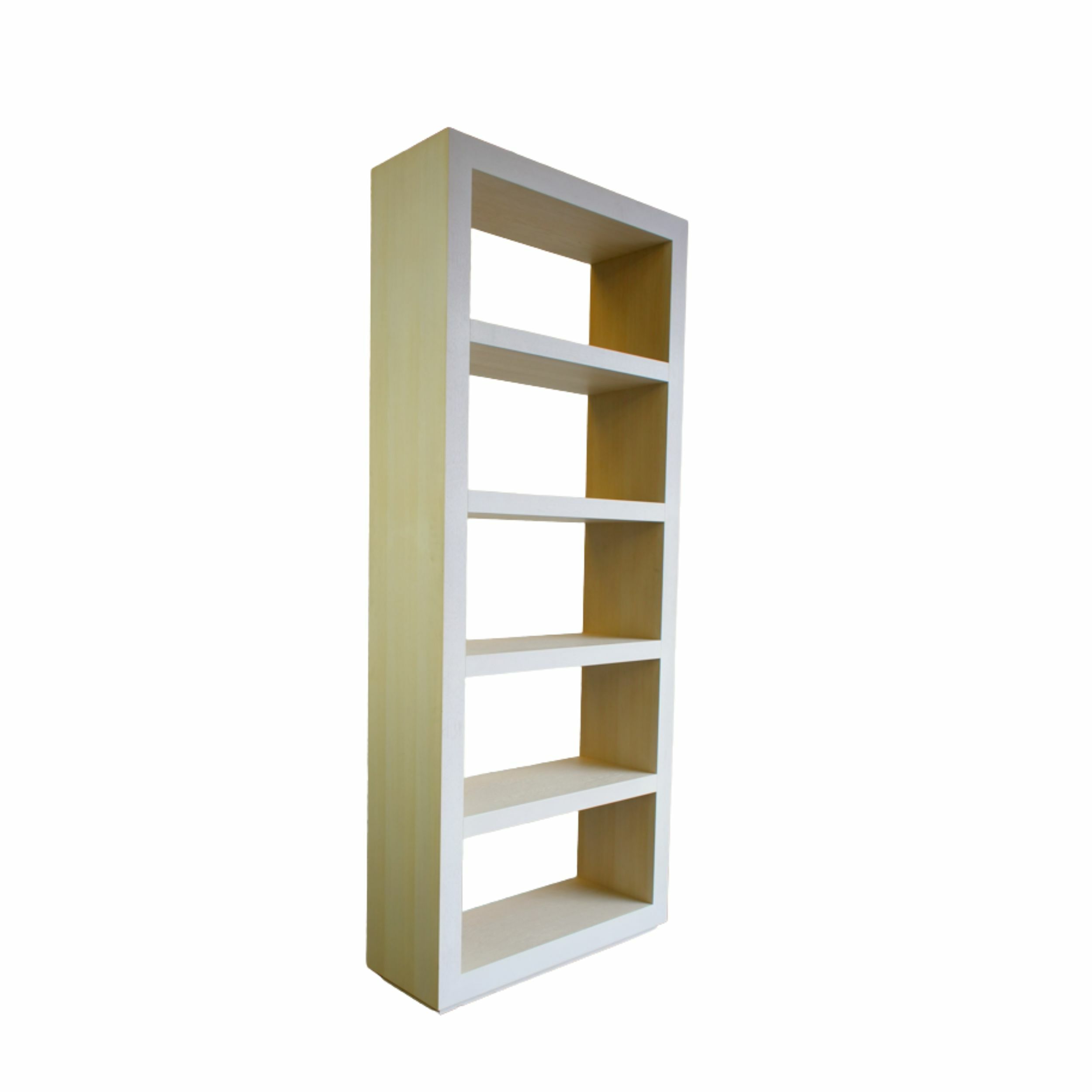 Solid Wood Tall rectangular open shelving unit with five symmetrical compartments, featuring a thick, block-style frame.