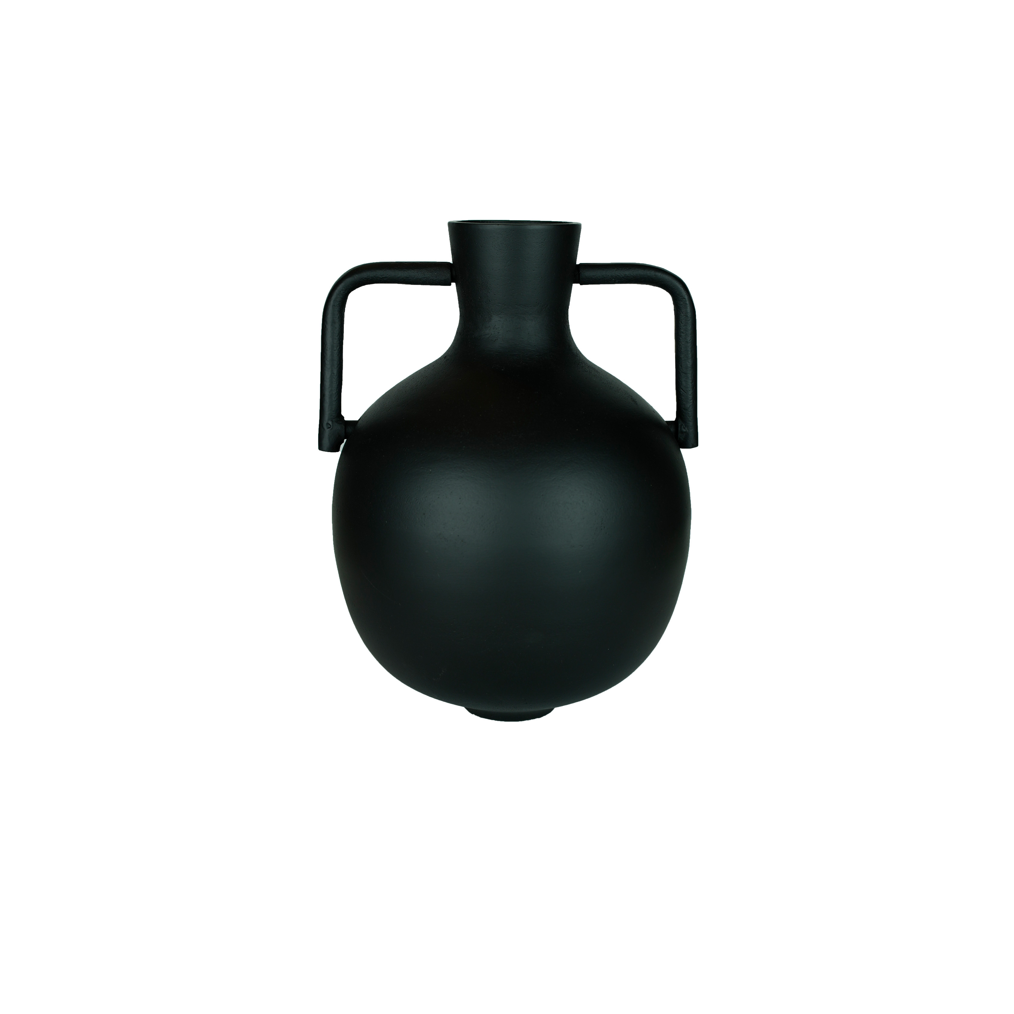 Black matte metal vase with two sleek, straight handles blends classic design with a modern touch, adding effortless style to any space.