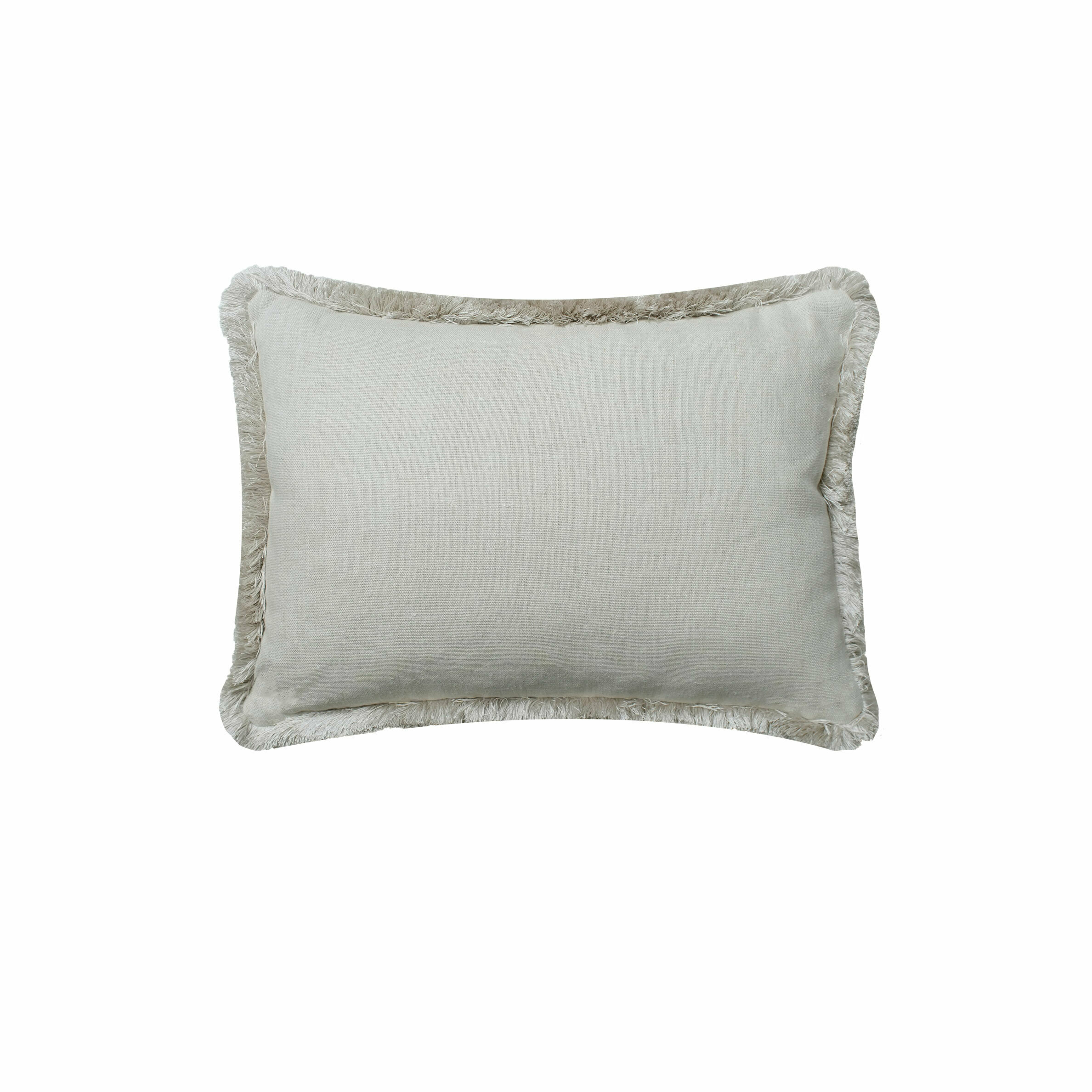 Rectangular cushion featuring a two-sided design with a soft, neutral colour palette, perfect for creating a timeless and versatile look. One side is crafted from premium linen in a warm neutral tone, while the reverse side in brushed wool adds warmth and a cosy texture. Finished with fringe detailing, this cushion is an elegant addition to any room.